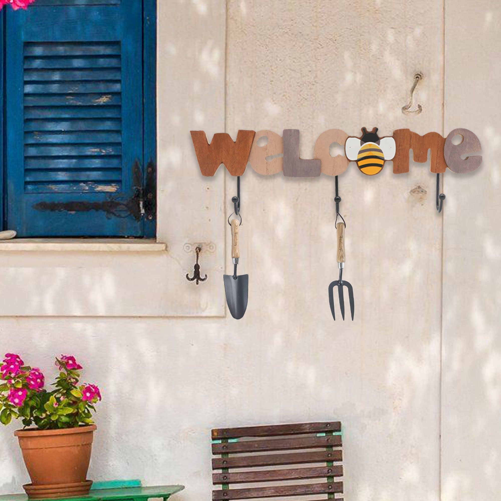 Amazon Com Selead Rustic Welcome Letter Sign With 3 Hooks Wooden Key Holder For Wall 15 7 X 4 9 Inch Wall Mounted Key Rack Entryway Decor Cutout Bee Welcome Wall Hanger Home Kitchen